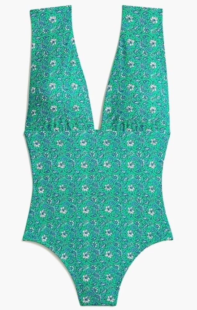 J.‎ Crew green paisley floral plunge v neck one piece swimsuit womens size L Size L - $36 - From Alexandra