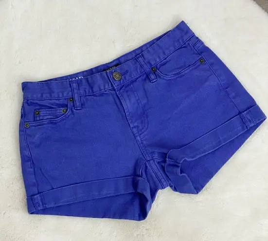 J. Crew Hipslung Low Rise Jean Shorts Size 0 Washed purple color, Stretch cotton denim, Cuffed h... Show more