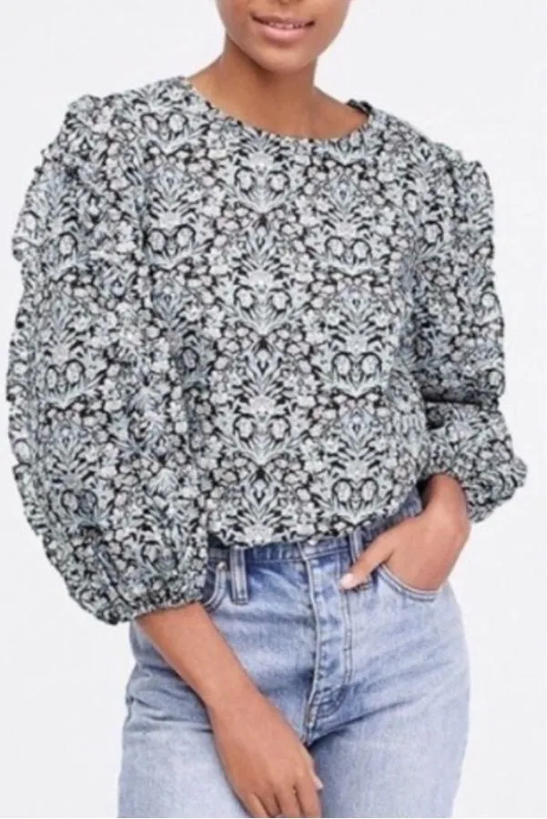 J. Crew Liberty Fabric Sambourne Floral Ruffle Puff Sleeve Blouse Medium. Style #AE840. Beautiful J.... Show more