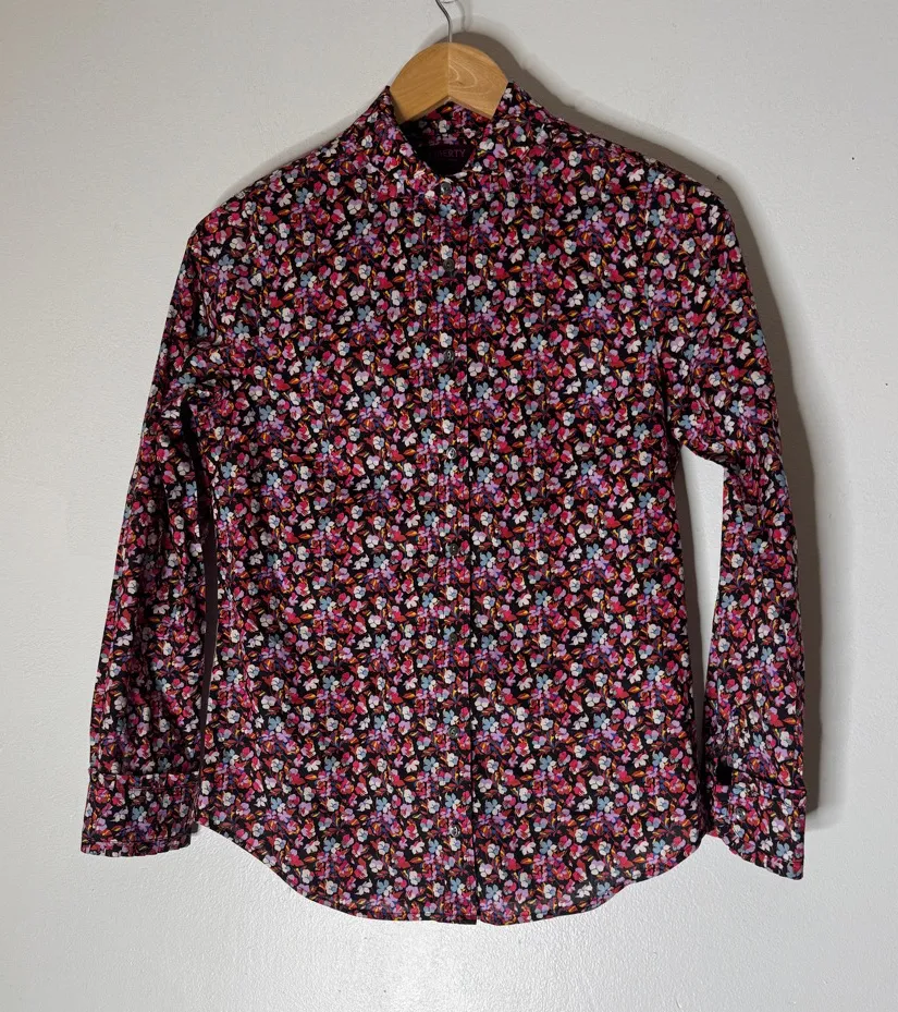 J Crew Liberty‎ Of London Sz 0 Ruffle Collar Shirt Tie Neck Red Pink Floral - $40 - From Crystal