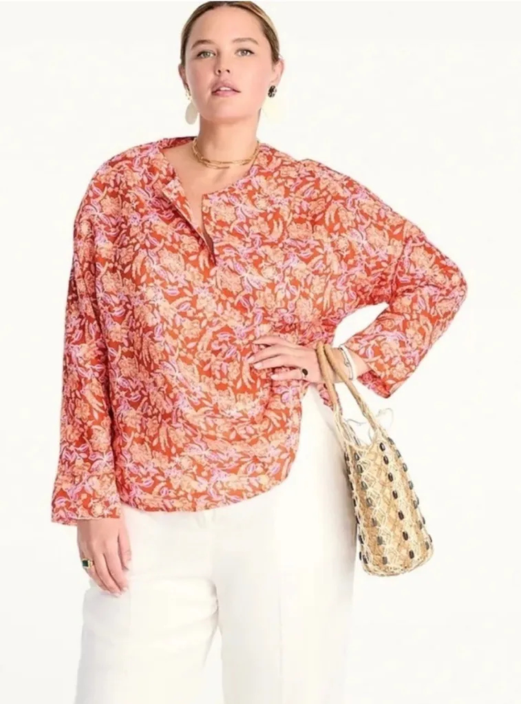 J. Crew Long -sleeve ramie tunic top in painted block print Size medium