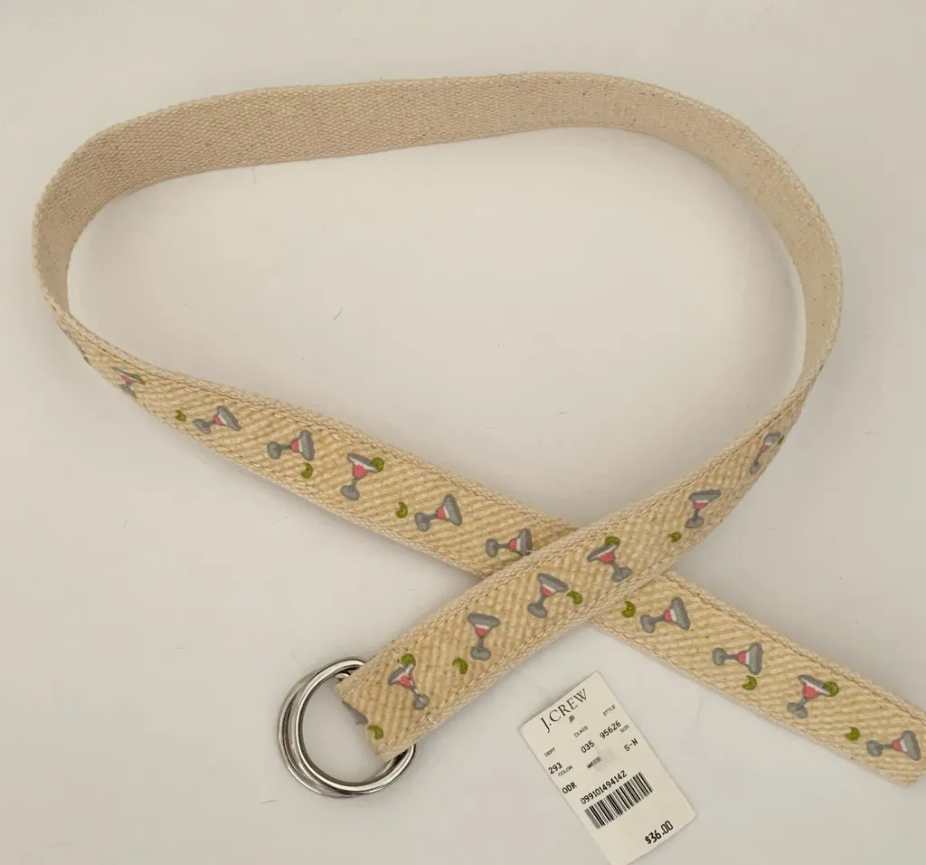 New with tags D ring belt size small/medium embroidery Martini glasses with olives