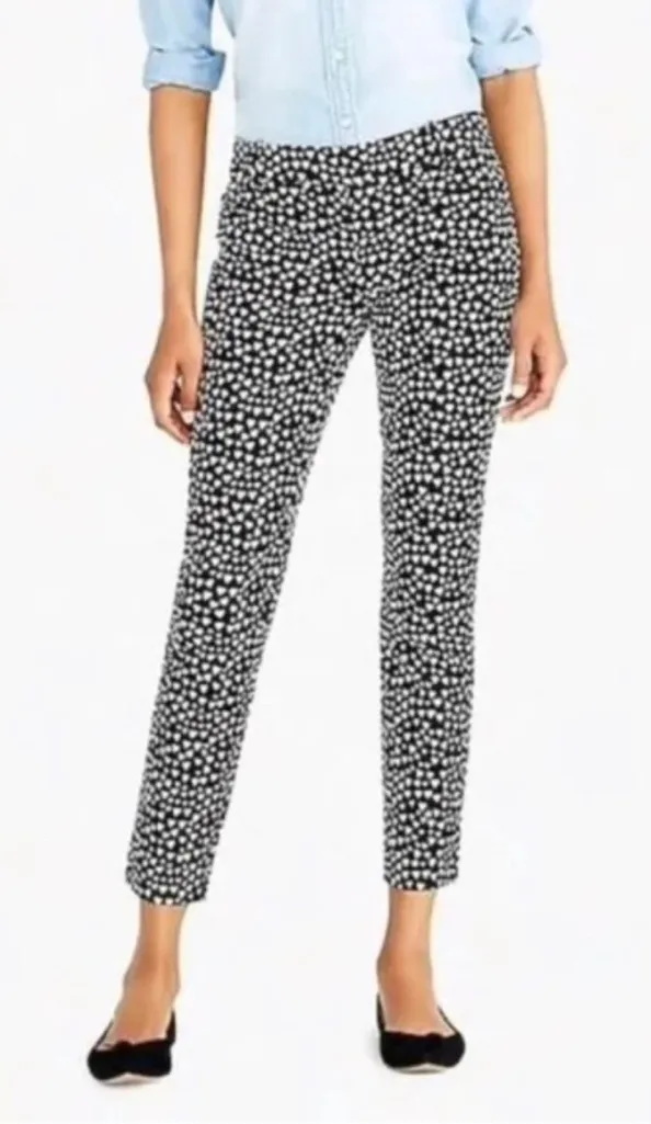 J Crew Mercantile Winnie Heart Print Cropped Straight Leg Pants Black 2. Cotton and elastane. Zipper... Show more