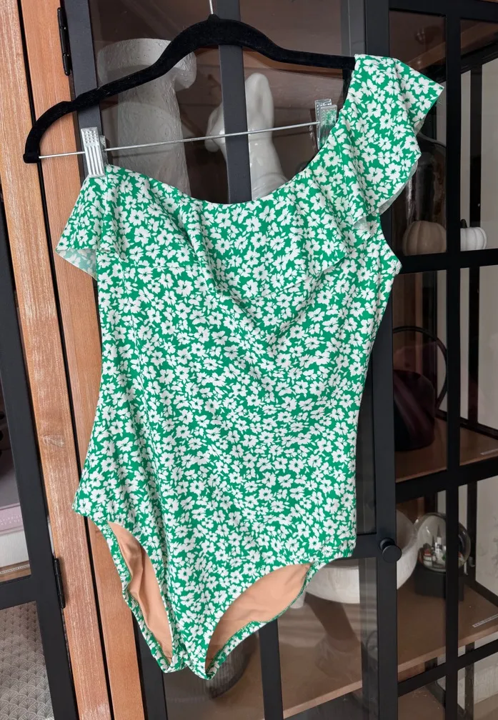 J. CREW one shoulder one piece swimsuit ruffle daisy print floral kelly green - $28 - From Filo