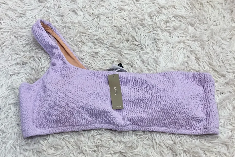 J Crew One Shoulder Textured Smocked Bikini Top Lilac Purple Size XXL. Removable padding. New with t... Show more