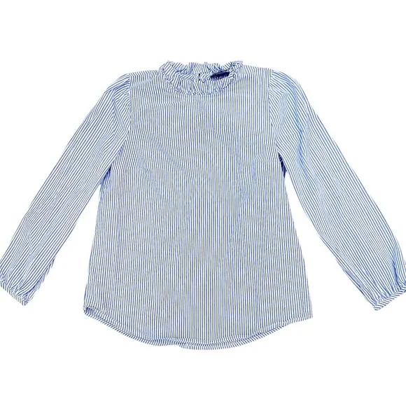 J crew organic cotton ruffle neck blue striped long sleeve career top Size XS - $25 - From Kaleidoscope
