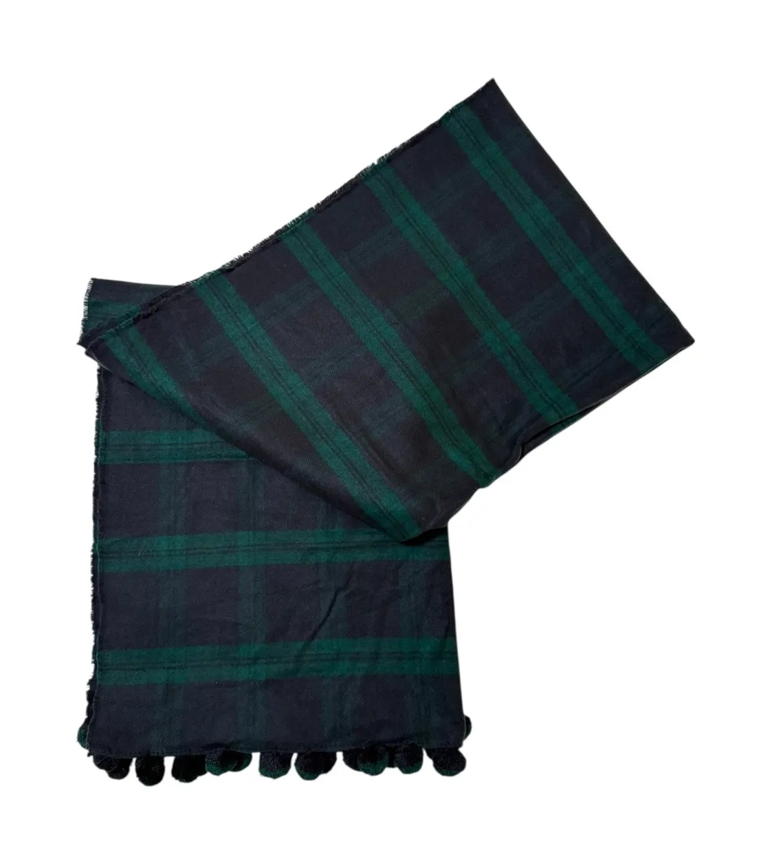 J. Crew Oversize Pom Pom Black Watch Tartan Plaid Scarf Color: Navy, Green Material: 100% Acrylic... Show more