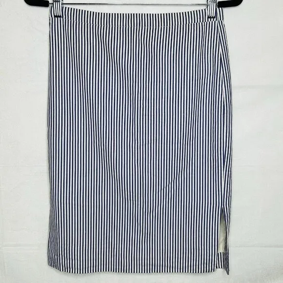 J. CREW Pencil Skirt Purplish Blue White Striped Cotton Lined Women's Size 0 Slit NWOT, 100% cotton.... Show more