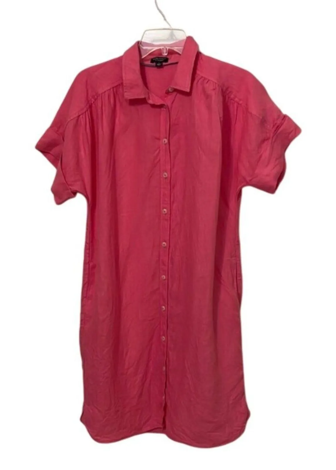 Hot pink, 100% Baird McNutt Irish Linen, short sleeve button front, collared, shirt dress by J. Crew... Show more