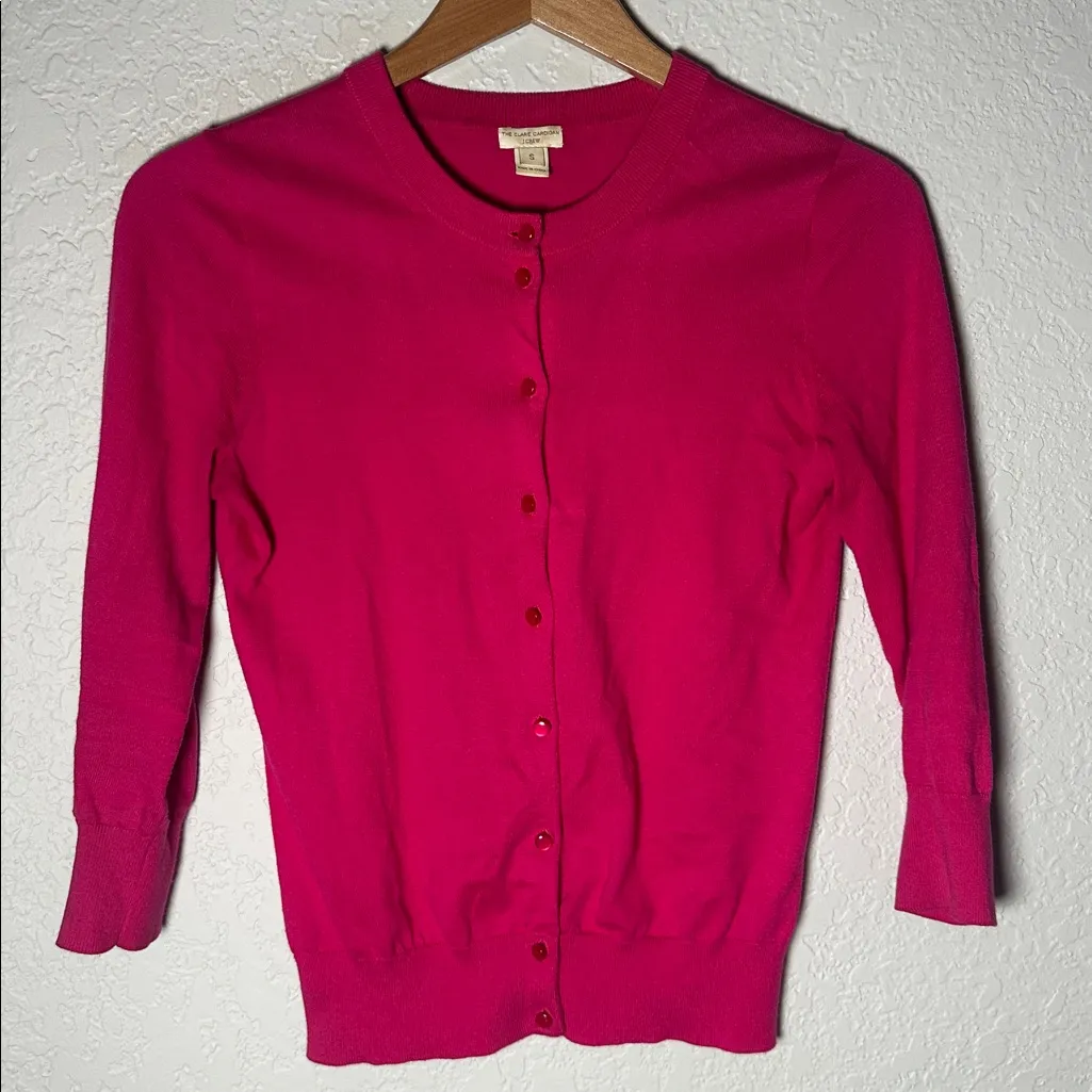 J. Crew Hot Pink Claire Cardigan Sweater Size small Style 14041 Fuchsia pink Preppy Twee Valentine... Show more