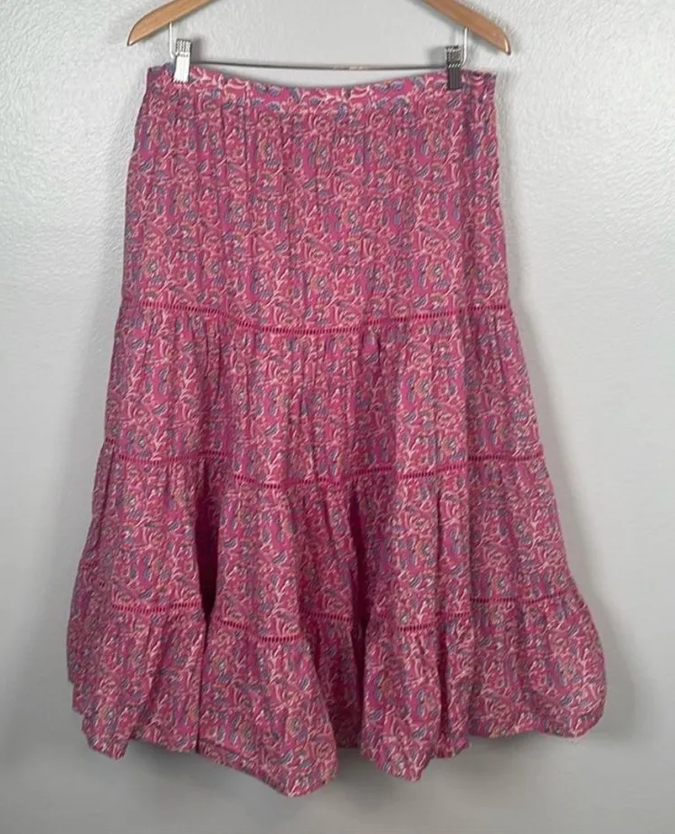J. Crew pink floral block print tiered full lined cotton midi skirt size XS - $40 - From Brittany