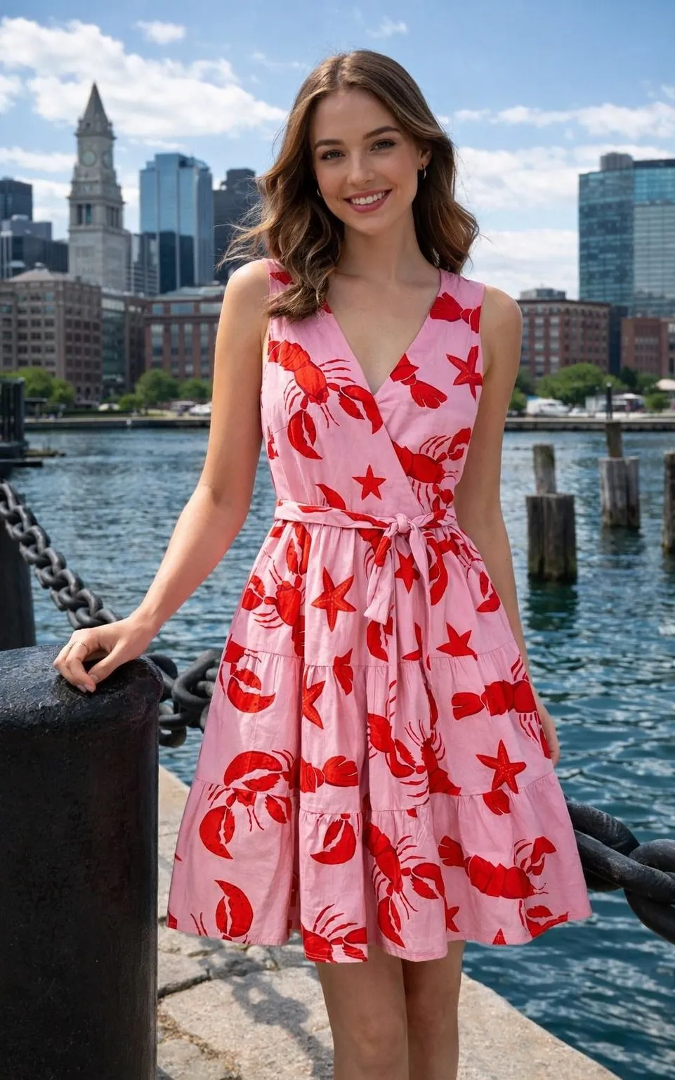Keywords: J. Crew, wrap dress, lobster print, starfish print, tiered dress, sleeveless dress, belted dress, summer dress, vacation dress, coastal style, nautical, playful, feminine