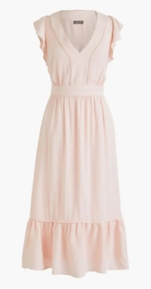 J. Crew Point Sur V-Neck Ruffle Hem Midi Dress Flutter Sleeve Blush Baby Pastel Pink Size 2 Side z... Show more