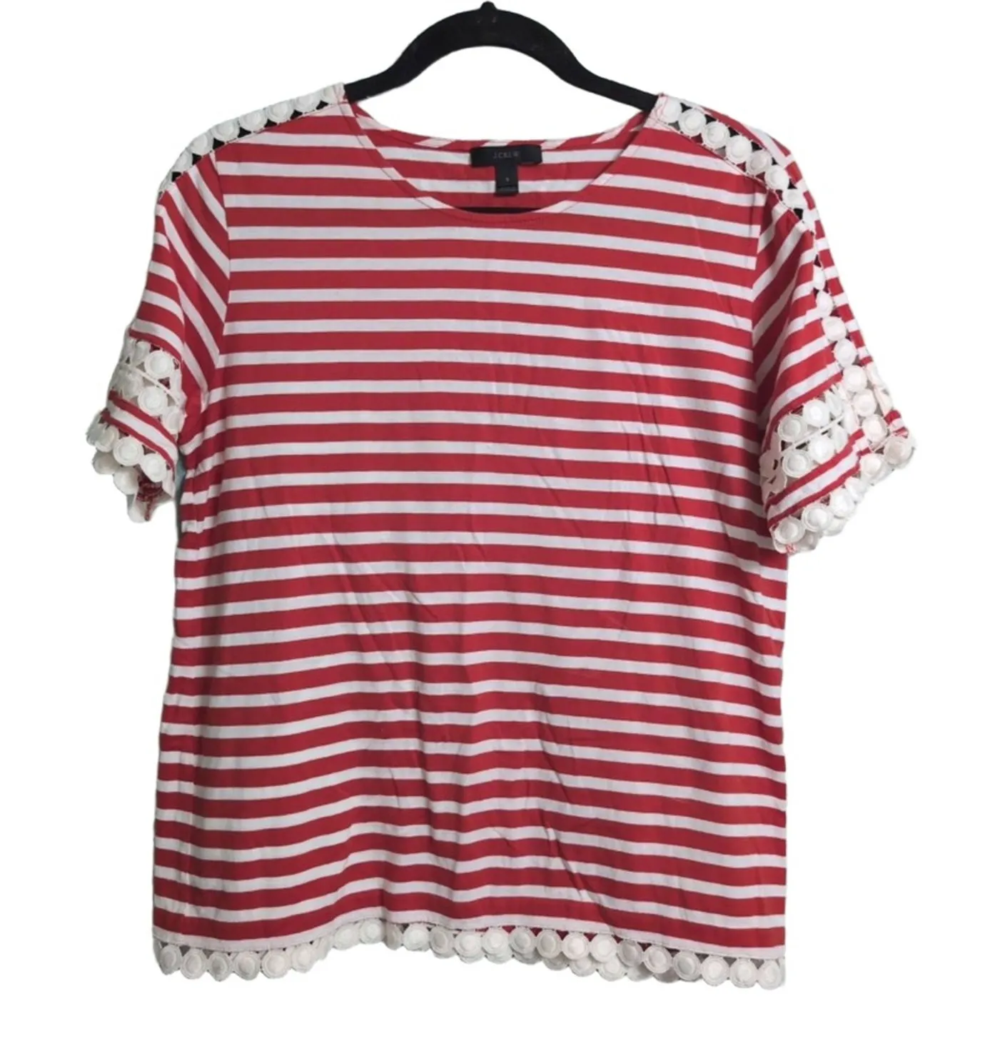 J.CREW Red White Striped Pom Pom Trim Short Sleeve Casual Tee Shirt Size 4 This J.CREW Red and Whit... Show more