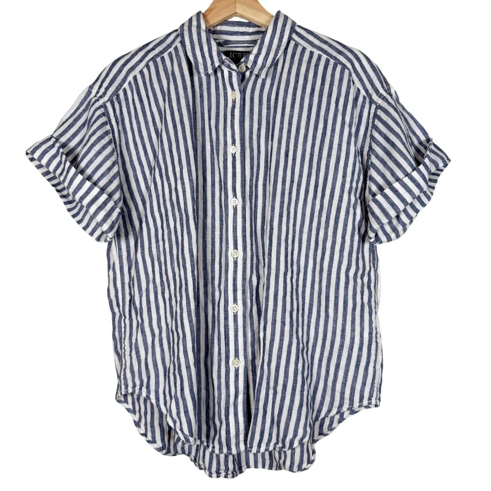 J. Crew relaxed fit short sleeve button down shirt in a classic blue and white stripe. This lightwei... Show more
