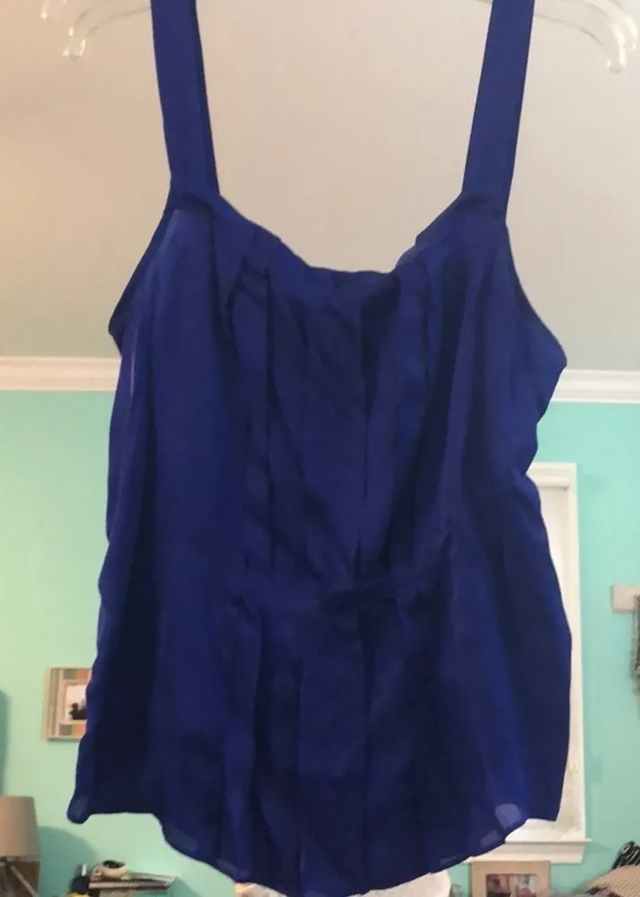 Drape yourself in the exquisite sheen of this J. Crew royal blue silk tank top. Its elegant pleats c... Show more