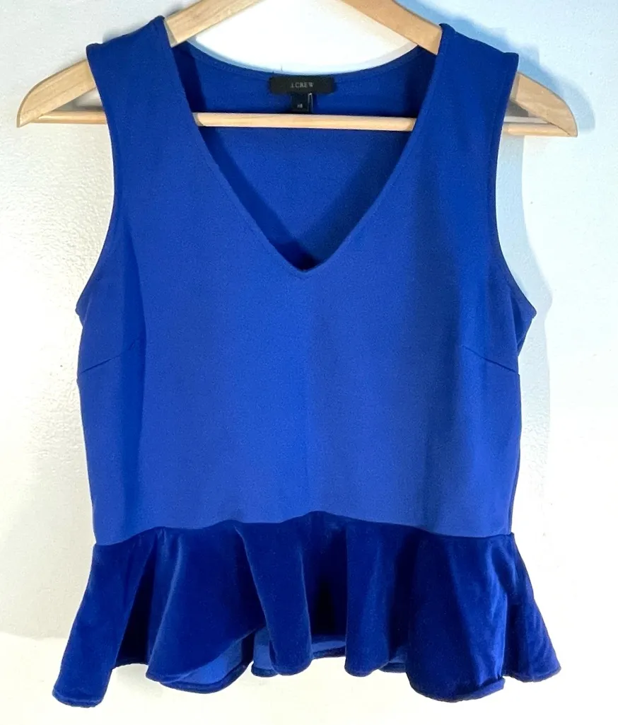 A velvet panel adds a fun and festive touch to this party-ready peplum top. - beautiful royal blue... Show more