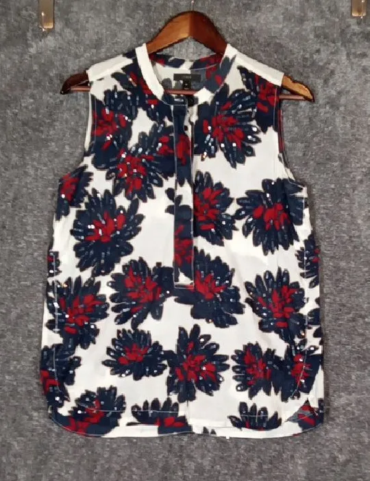 Chic sleeveless blouse with bold floral design. Perfect for versatile styling. Plz note it is miss... Show more