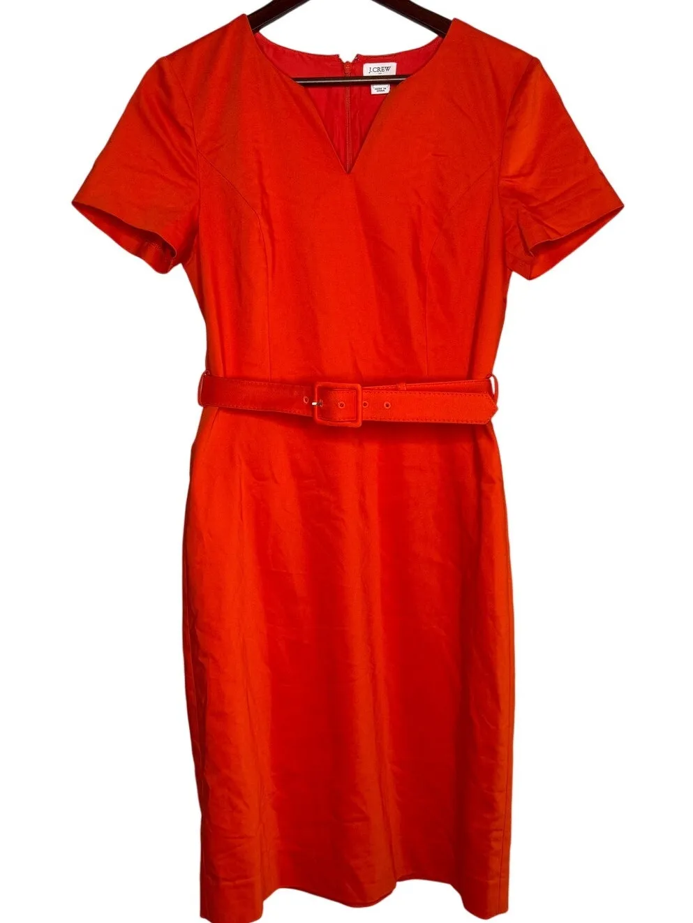 J. Crew Short Sleeve Belted V Neck Sheath Midi Stretch Dress Lined Zip Up 6 Orange Tangerine, Amber,... Show more