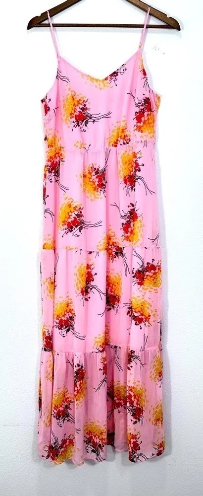 J. Crew Mercantile Pink Floral Sunburst Spaghetti Strap Tiered Maxidress Size 6 Pre-Owned in Excelle... Show more