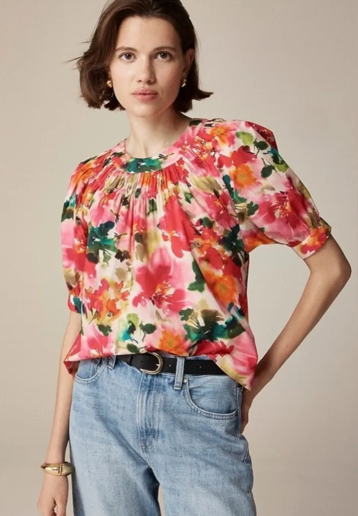 J. Crew Smock-neck puff-sleeve top in floral cotton poplin Women’s Size M Pink Size M - $35 - From Isabel