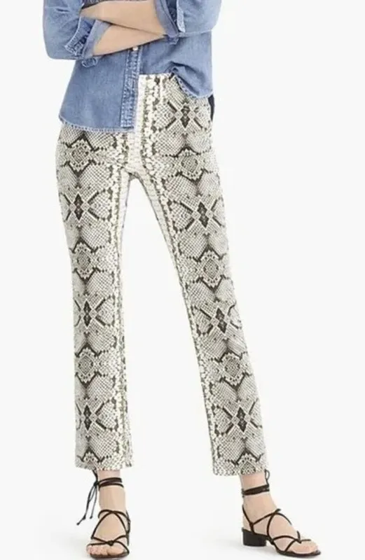 J. Crew Snakeskin Print Slim Flared Crop Mid Rise Trousers Dress Pants 24 Cream Ivory Green Brown G... Show more