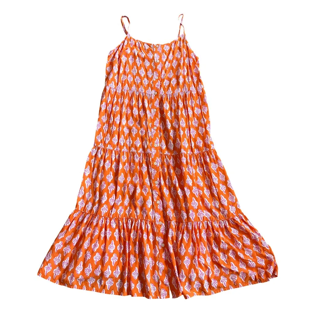 J. Crew Size 10 women's US Strappy tiered midi dress in fun and bold bohemian print Pull-on styling;... Show more