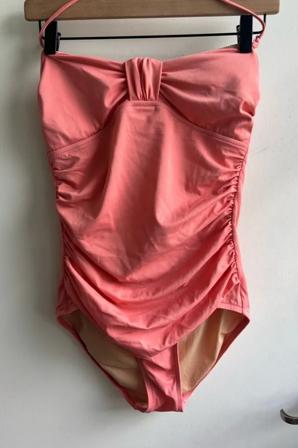J. Crew Sweetheart Ruched Bandeau One Piece in salmon pink. Size 8. Comes with removable halter str... Show more