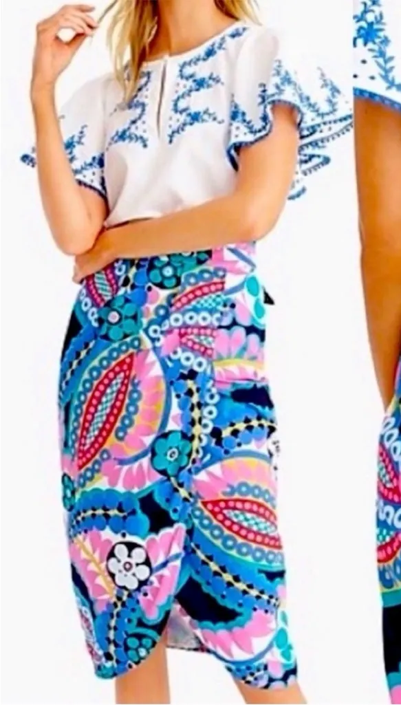 — Gently used Multicolor blue pink teal green white yellow floral kaleidoscope print — Approx. Meas... Show more