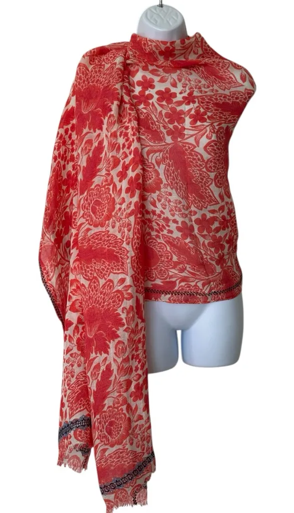 Bright pink and cream scarf with bold patterns. Ideal for a stylish accent.
