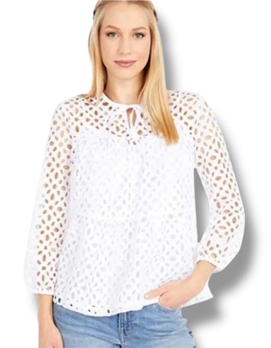 Embrace effortless charm with this J. Crew eyelet lace blouse. The delicate floral cutouts create a... Show more