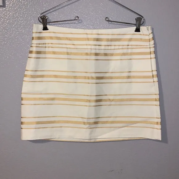 J Crew white gold striped pencil skirt Size 8 Excellent condition Waist measures 16.25 inches Leng... Show more