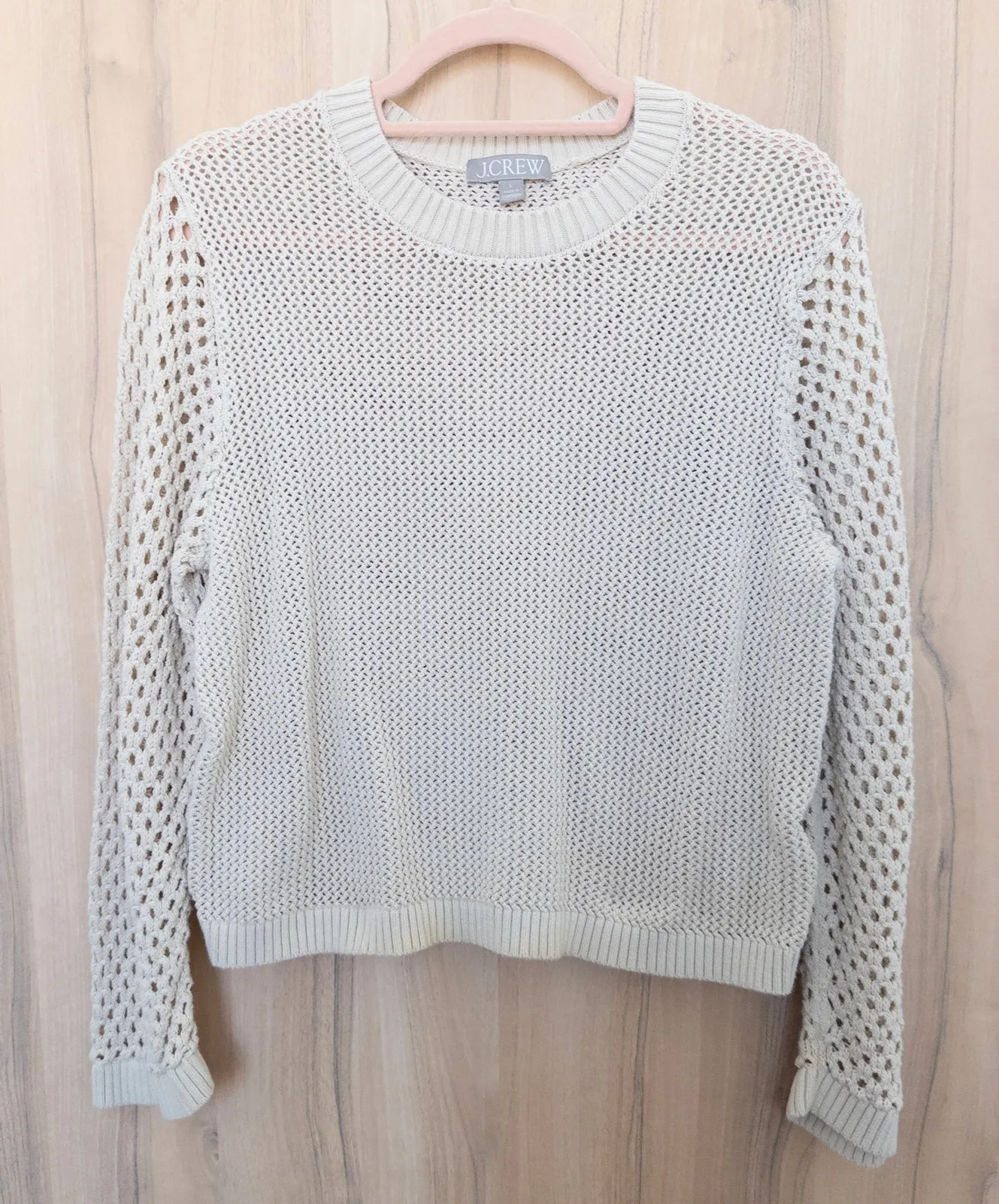 J. Crew beige crochet knit sweater. This stylish top features a classic crew neckline and long sleev... Show more