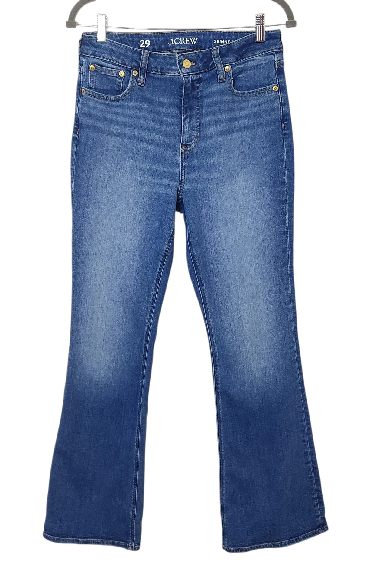 Discover comfort and style with J. Crew women's blue jeans in a skinny flare style with button/zippe... Show more