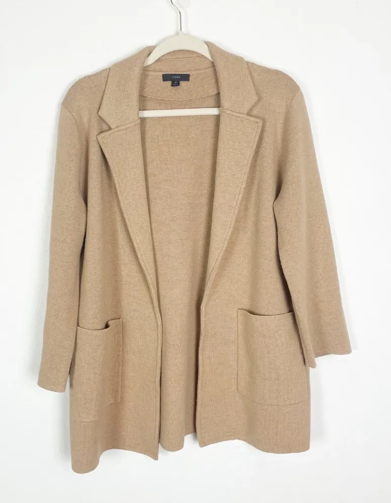 This is a tan beige brown open front knit sweater blazer from J. Crew. This one is the 365 Sophie st... Show more