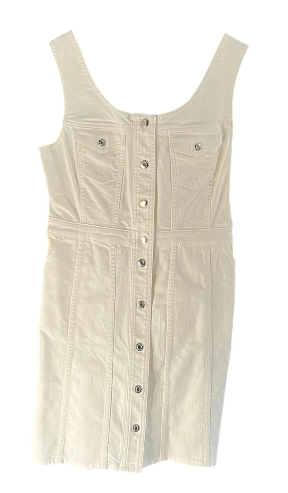 J Crew White Denim Dress Sleeveless Scoop Neck Snap front closure 2 breast pockets 2 pockets at hip... Show more