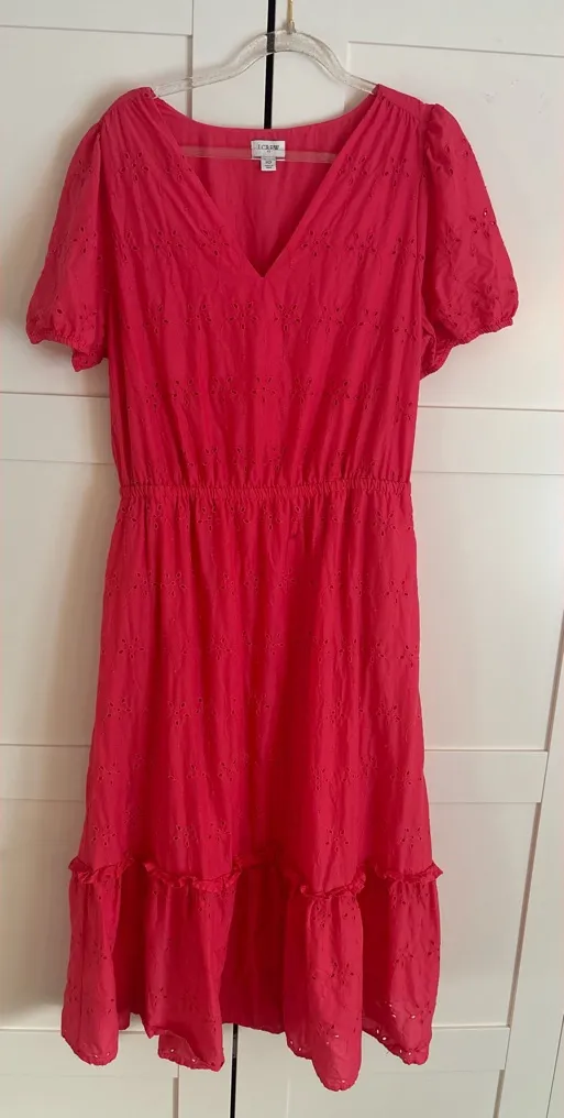 This elegant red eyelet dress is perfect for any occasion. Its vibrant color and delicate design mak... Show more