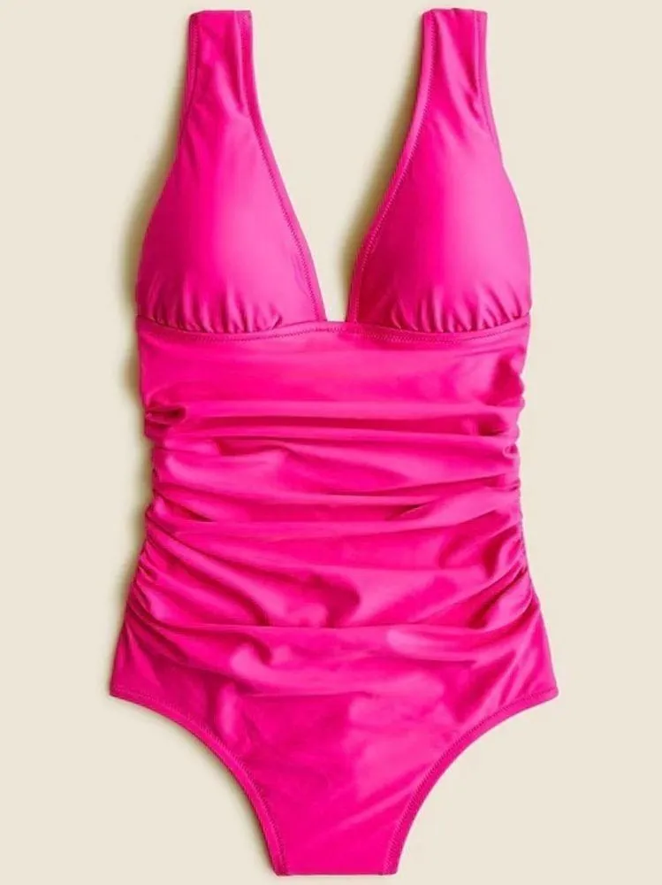 Stylish tank top in a vibrant pink color. Features a flattering ruched design. Very cute, bright ne... Show more