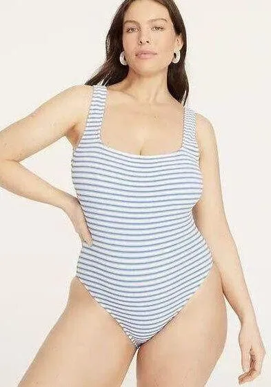 New NWT J. Crew Blue White Striped Textured Square Neck One-Piece Swim Bathing Suit Women's Size 24... Show more