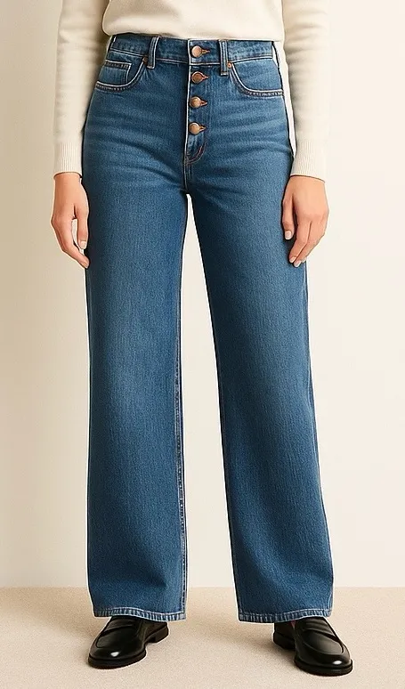 J. Crew full-length wide-leg jeans in women’s size 30, with a high rise, button fly, and soft all-da... Show more