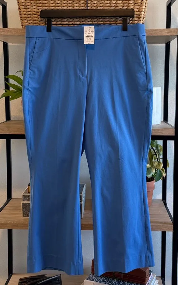 NWT J. Crew Kelsey Cropped Stretch Flare Blue High-Rise Woven Career Dress Pant Trouser, 14 New wit... Show more