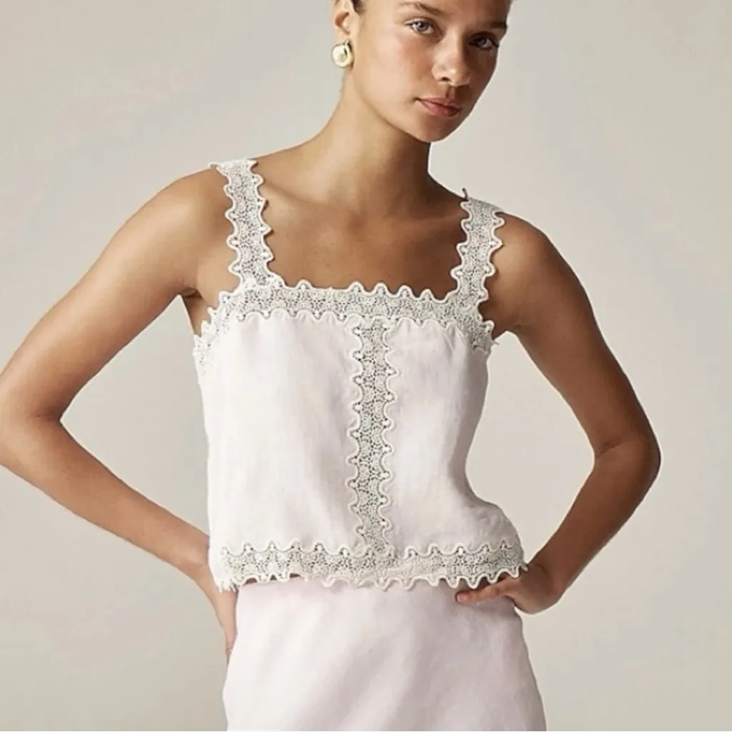 Size Large Crochet-inspired lace trim along the straps and down the front 100% linen Machine wash co... Show more