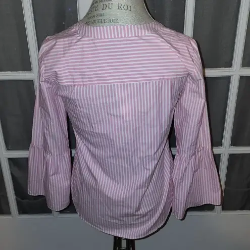 NWT J Crew Womens Pink White Striped Bell Sleeve Shirt Top Blouse 0 Bust: 36" Arms: 21" Length: 26"... Show more