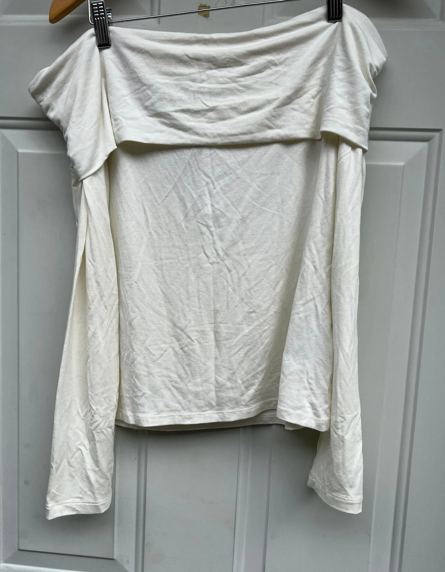 In Cream color Size Meduim Fabric is soft and stretchy brandnew with tags