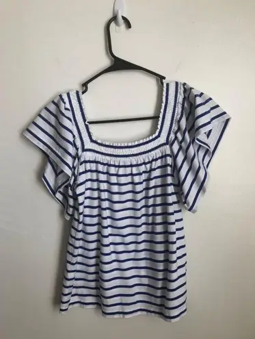 Excellent condition. Off the shoulder striped top blue and white . 100% cotton