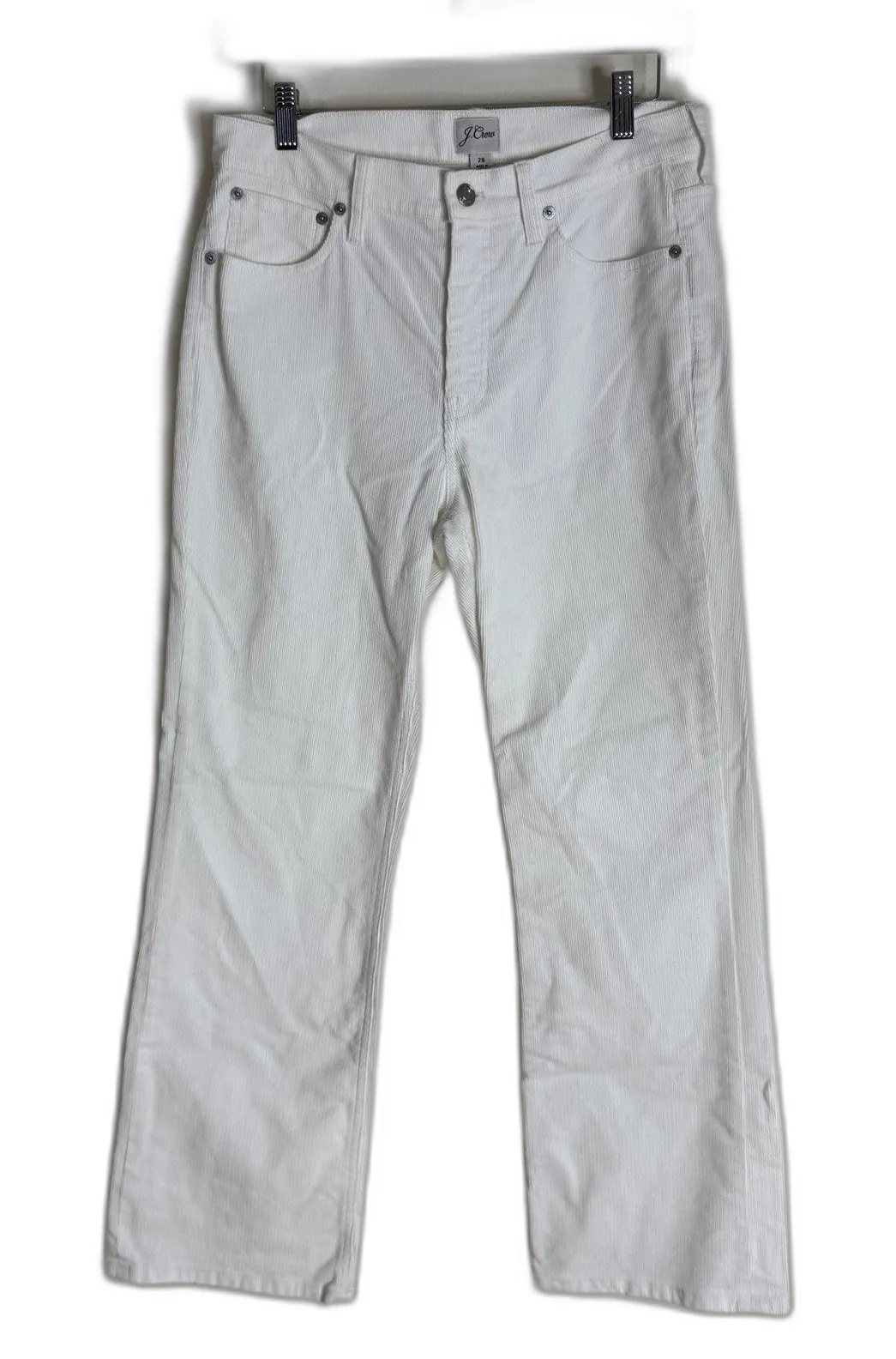 Brand: J.Crew Item: Womens corduroy pants (5-pocket jeans style) Tag size: 28 Color: White Fabric: Corduroy with soft ribbed texture Style: Straight leg, mid rise Features: Zip fly with button closure; metal rivets; 5-pocket design; belt loops Back: Two patch pockets Brand markings: J.Crew waistband tag; branded button/hardware visible Notes: White fabrics can show marks more easilyplease review photos for details and overall appearance. bag90 fall , winter , cozy , cute , casual , outing , office ,