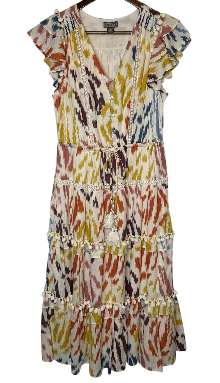 Point Sur J. Crew Cotton Voile Tiered Midi Dress Flutter Sleeve Pom Pom size 4 Condition: Great! -... Show more