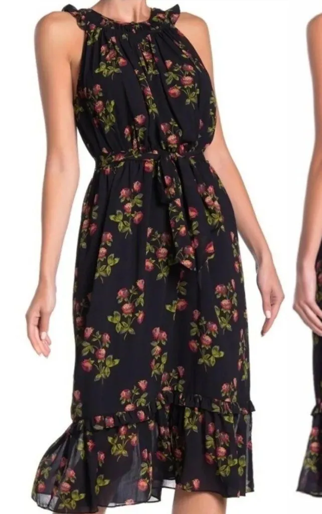 ◇ Point Sur by J. Crew ◇ High-Neck Ruffle Floral Dress in Navy j5092 ◇ PETITE 6 / 6P ◇ blouson dress... Show more