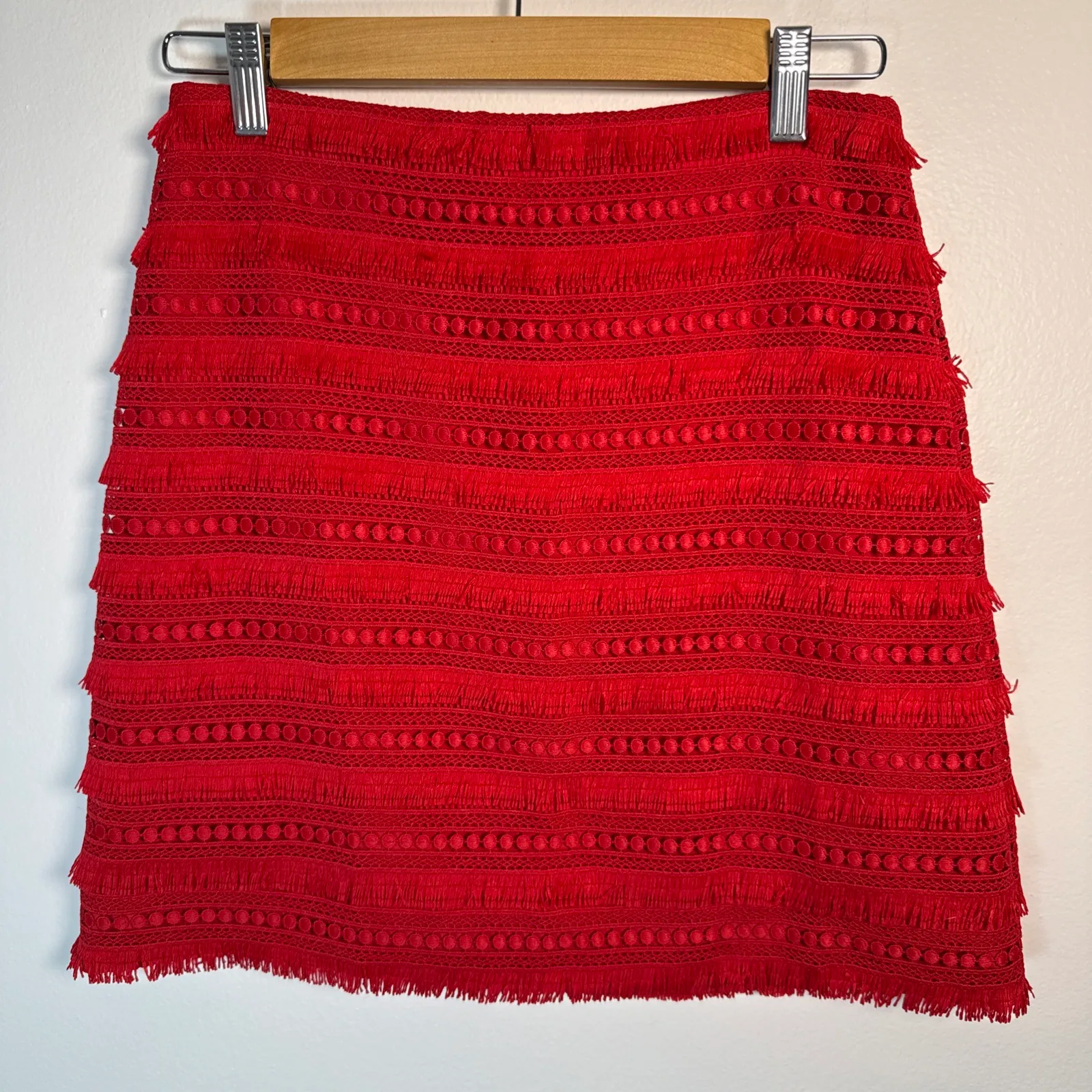 The J.Crew Red Fringe Mini Skirt in size 00 is a festive and stylish option for the holiday season.... Show more