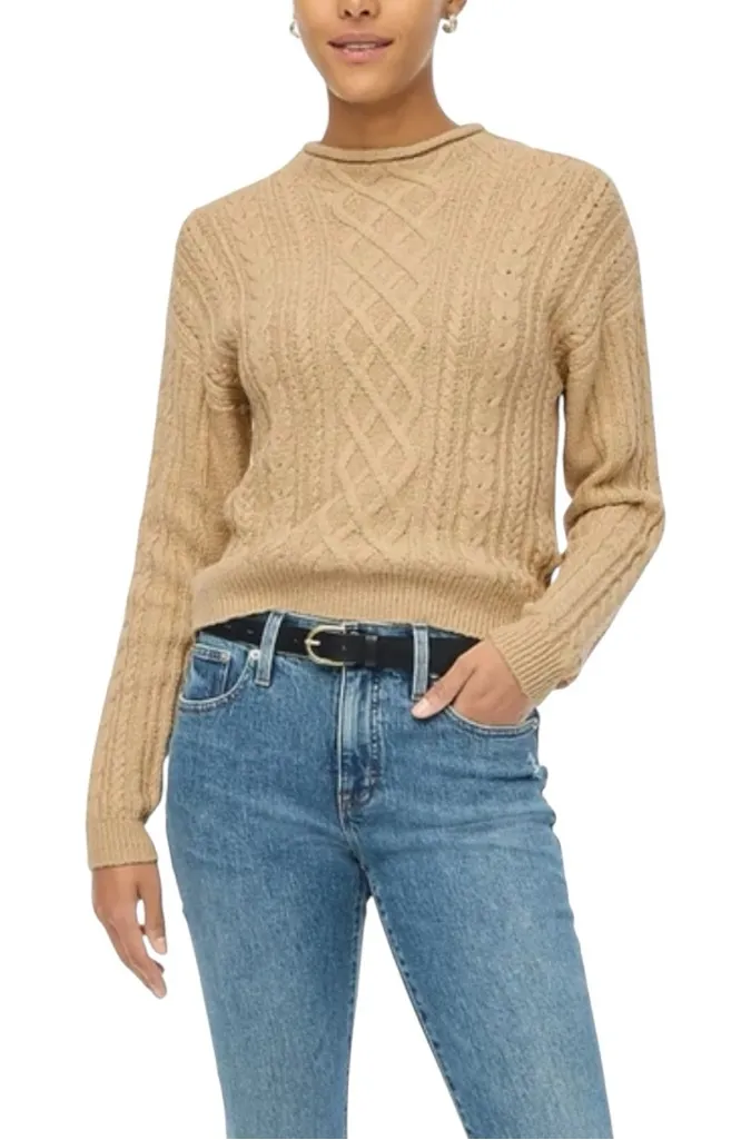 J.Crew Roll Neck Cable Knit Sweater Womens Preppy Old Money In Tan Size Medium Pit to Pit 20” Lengt... Show more